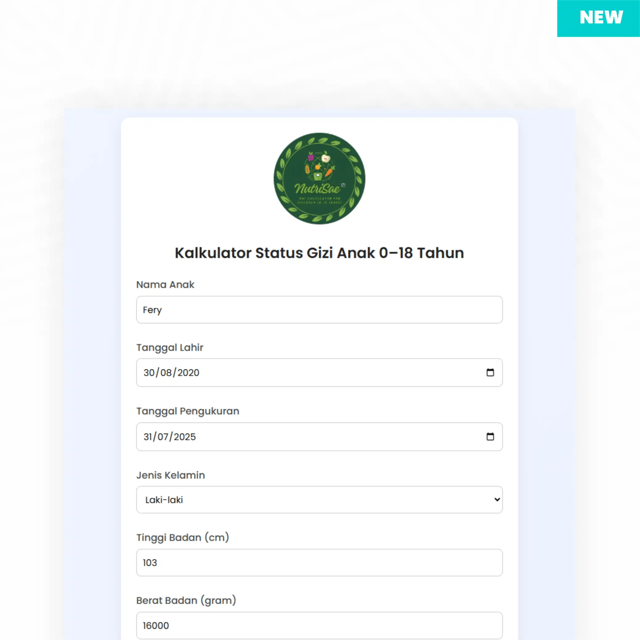 NutriSae IMT Kalkulator Gizi Anak 0-18 Tahun